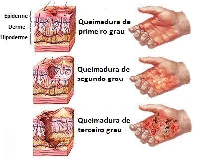 Segundo o dano causado na pele e a profundidade da lesão, as queimaduras dividem-se em primeiro, segundo e terceiro grau, sendo este o mais grave de todos, pois são queimaduras que requerem atenção médica urgente devido à profundidade das mesmas.