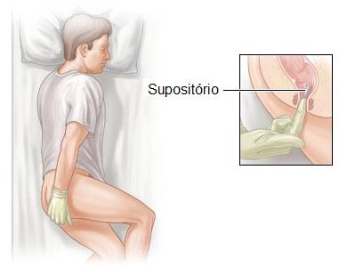 No momento de introduzir um supositório retal, o paciente deve se deitar sobre o seu braço esquerdo, fletir a perna direita, esticar a esquerda e inspirar profundamente. As nádegas devem ser separadas e o supositório deve ser inserido no ânus, que deve estar limpo, pela ponta menos larga, e empurrado cerca de 5 cm.