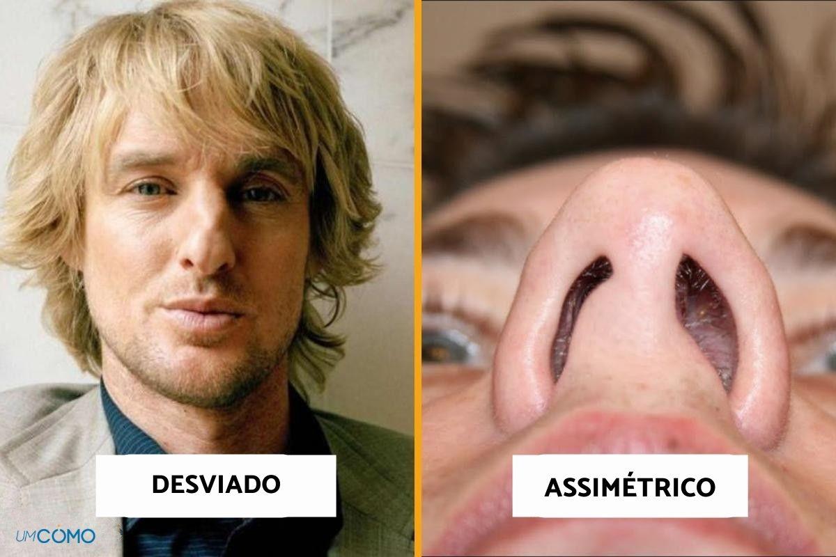 Não é exatamente o mesmo que o tipo de nariz ondulado ou desviado, pois nos narizes assimétricos, é o septo interno, aquele que separa as duas narinas, que apresenta o desvio, de modo que as narinas não são simétricas. A sua correção implica procurar essa simetria e também consegui-la tendo em conta a harmonia que deve existir não só entre as duas cavidades do nariz, mas também entre os dois lados da própria face.
